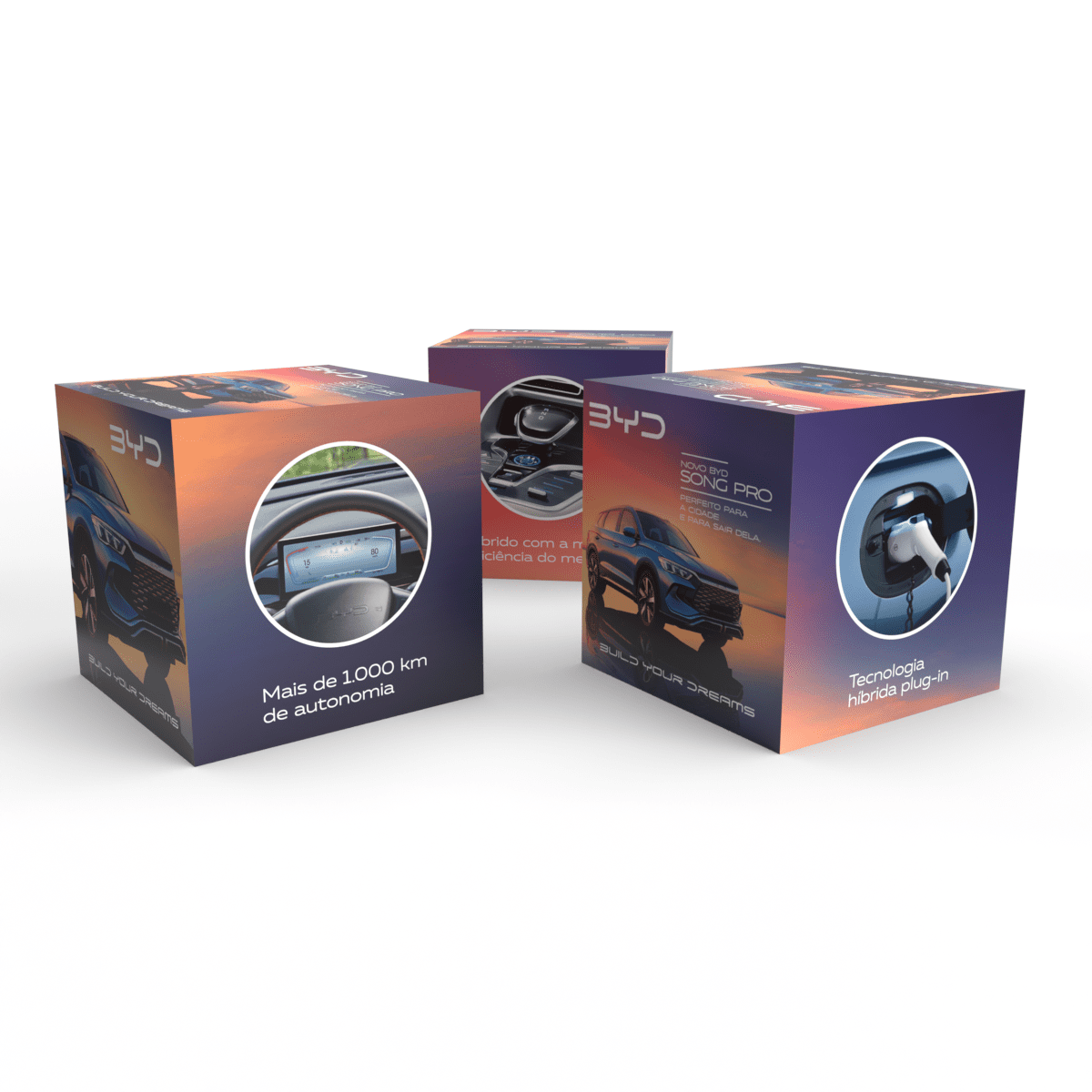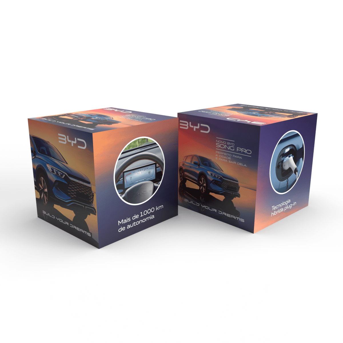 O Cubo Promocional une o útil ao agradável: é uma ferramenta de comunicação poderosa e um objeto de decoração atraente. Seu baixo custo de produção permite que a marca invista em várias unidades para criar "paredes" ou "totens modulares" dentro da loja, gerando um volume visual que impossibilita a indiferença do consumidor.