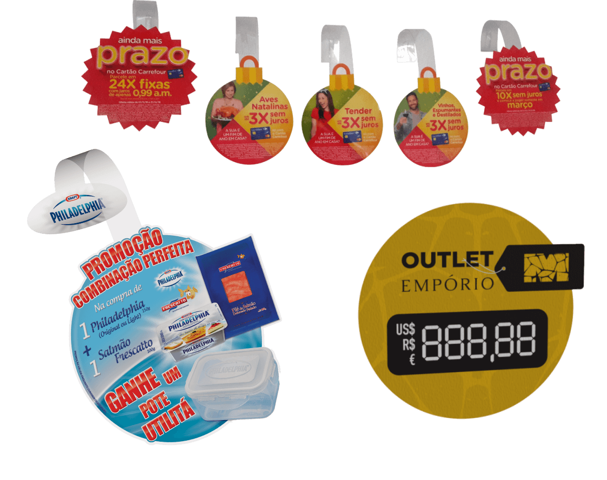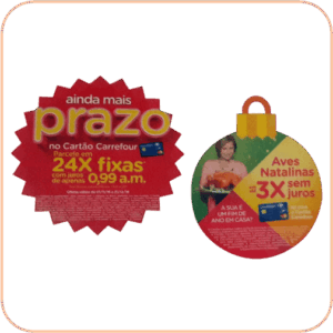 Na Multi Press PDV, trabalhamos com formatos versáteis. Além dos tradicionais cortes redondos de 13x13cm ou 15x15cm, produzimos formatos especiais que acompanham a silhueta do seu produto. Todos acompanham a haste de 14cm com adesivo de alta fixação, garantindo segurança e durabilidade no ponto de venda.